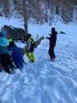 Heute Nachmittag sind wir dann endgültig im Winterwunderland angelangt. In Kasern besuchten wir eine kleine, ganz besondere Kapelle mitten im Nirgendwo. An deren Fuße unternahmen wir eine unfassbare Schneeballschlacht. Groß und Klein wurden mit hereingezogen und die Heizungen haben allerhand zu tun, um die Skianzüge, Handschule und Co. bis morgen früh trocken zu bekommen. Die Ateliers sind fast beendet. Nun haben wir alle drei Aktivitäten belegt. Die Bilanzrunde, die im Anschluss ans Abendprogramm den Abschluss unseres Tages darstellt, wird heute vermutlich schon etwas emotionaler ausfallen, da das Ende der Schneeklasse mit großen Schritten naht. Dennoch blicken wir vor allem mit Vorfreude auf den morgigen Abschlusstag voraus, bevor wir uns übermorgen Abend endlich wiedersehen werden. Wir senden euch daher von Herzen die besten Grüße aus dem Winterwunderland.