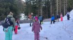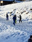 Seit gestern steht das Skifahren schon morgens auf dem Programm. Wir fahren daher auf frisch aufbereiteten Pisten und profitieren von besten Schneeverhältnissen. Unsere Fortschritte sind beachtlich und der Spaß auf der Piste steigt von Tag zu Tag. Am gestrigen Nachmittag brachen wir zur längsten Rodelfahrt unseres Lebens auf. Doch dieses unnachahmliche Vergnügen mussten wir uns hart erarbeiten. Den Berg, den wir herunter gerodelt sind, mussten wir nämlich zunächst einmal zu Fuß besteigen. Anderthalb Stunden bergauf bedeutete das für die Meisten. Oben wartete neben einem erfrischenden Getränk aber auch eine wunderbare Schneelandschaft auf uns, die wir während einer Verschnaufpause genießen konnten. Die folgende Schlittenfahrt war legendär! Steile Wege, enge Kurven und hohes Tempo stellten die perfekte Kombination für eine adrenalinreiche Abfahrt dar. Leider dauerte diese Abfahrt aber mit 10 bis 15 Minuten deutlich kürzer.