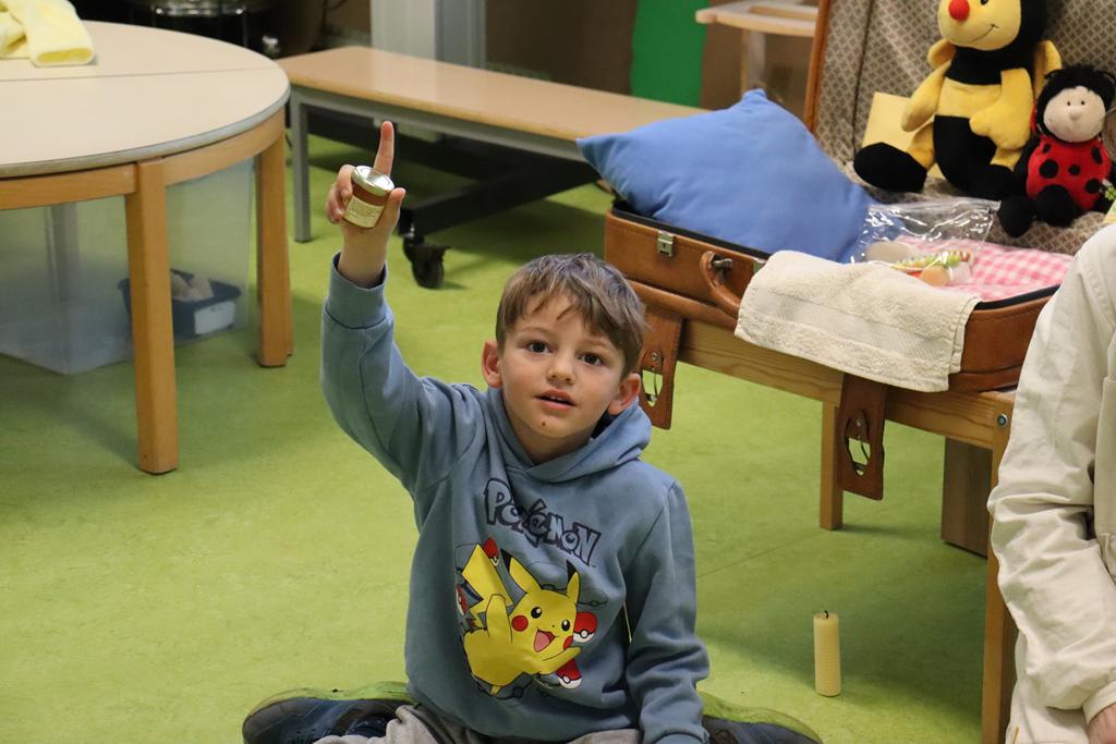 Eine abwechslungsreiche und lehrreiche Woche liegt hinter uns, in der wir sehr viel über Bienen gelernt haben. Zwischendurch blieb auch genügend Zeit zum Basteln, Malen, Kissenturnen, Backen, Kasperle schauen und der große Sportparcours bereitete den Kindern auch viel Spaß.