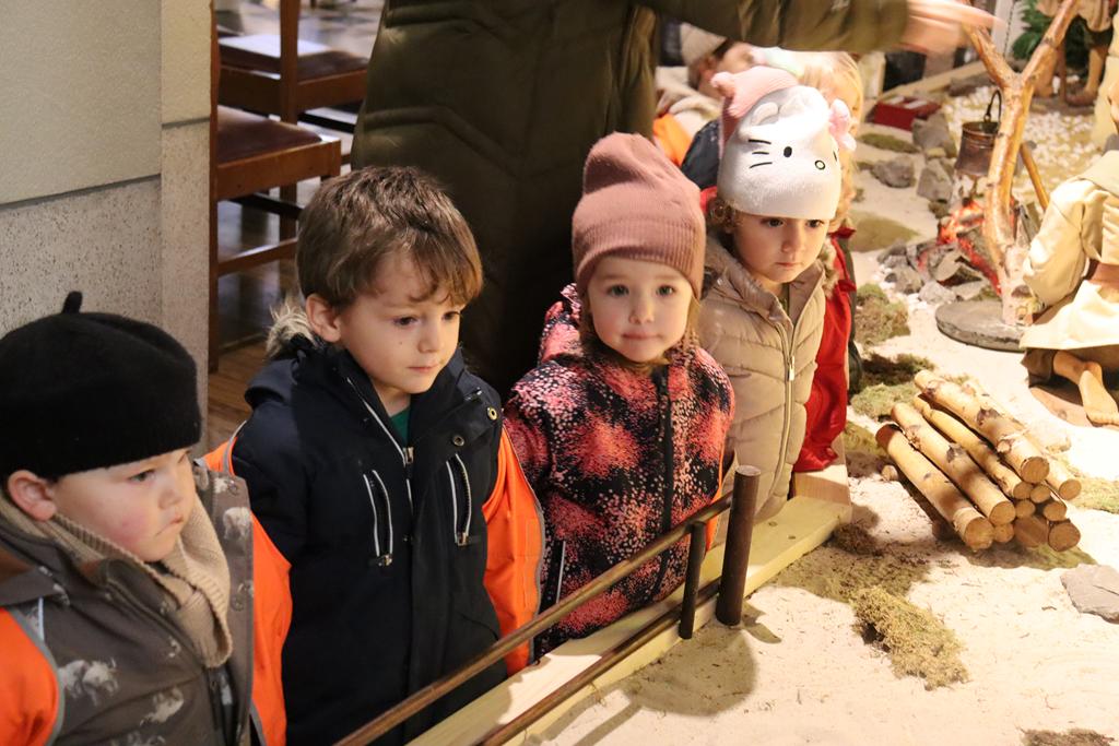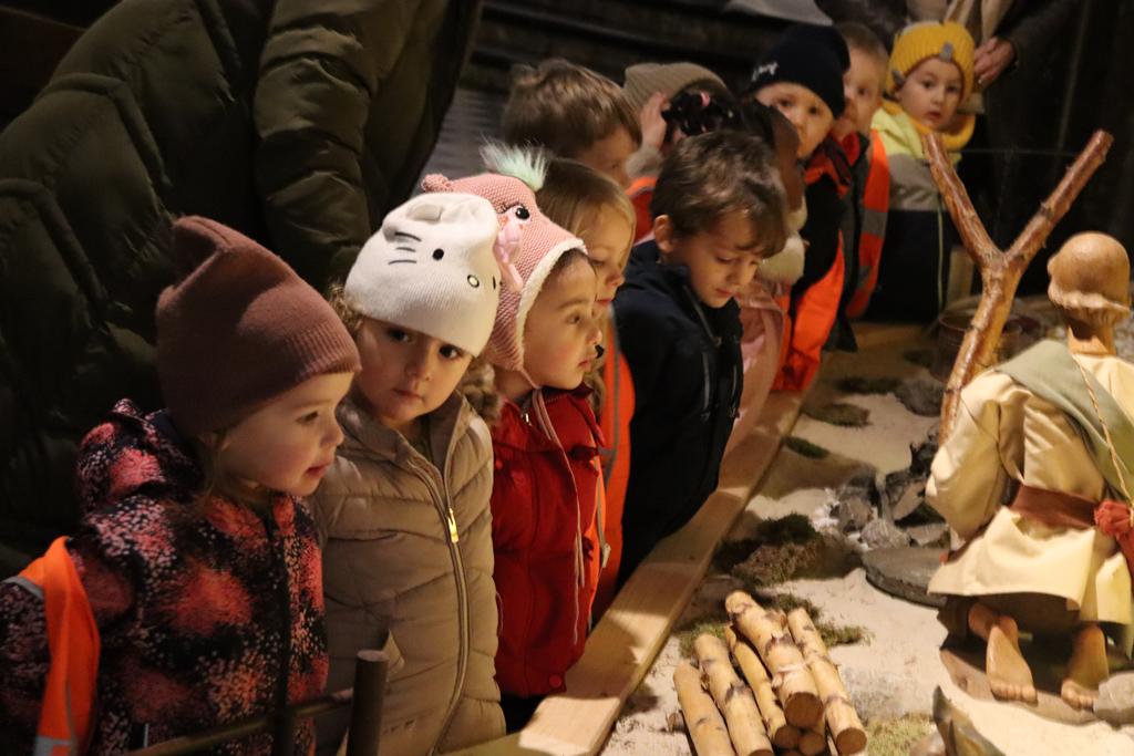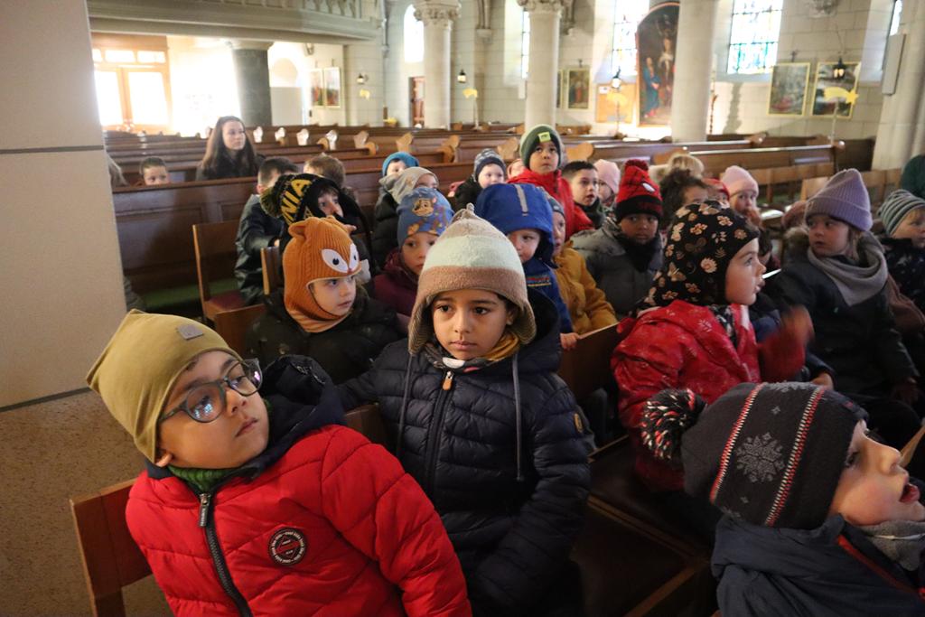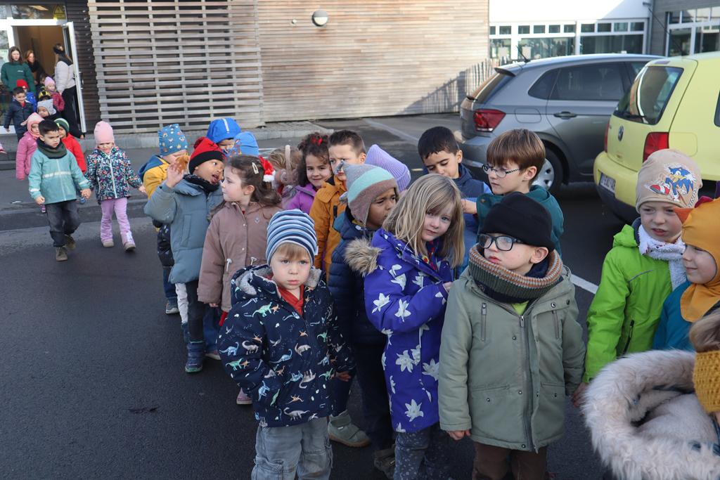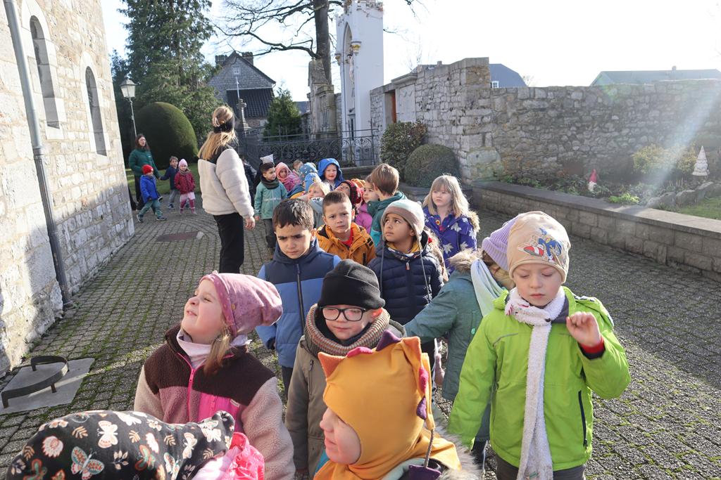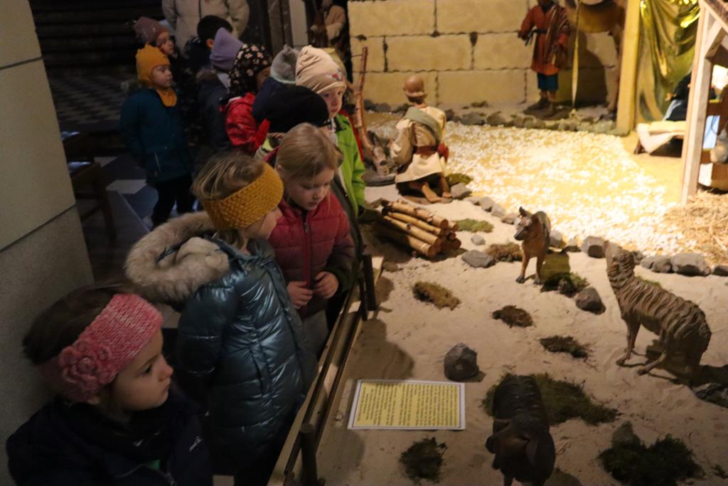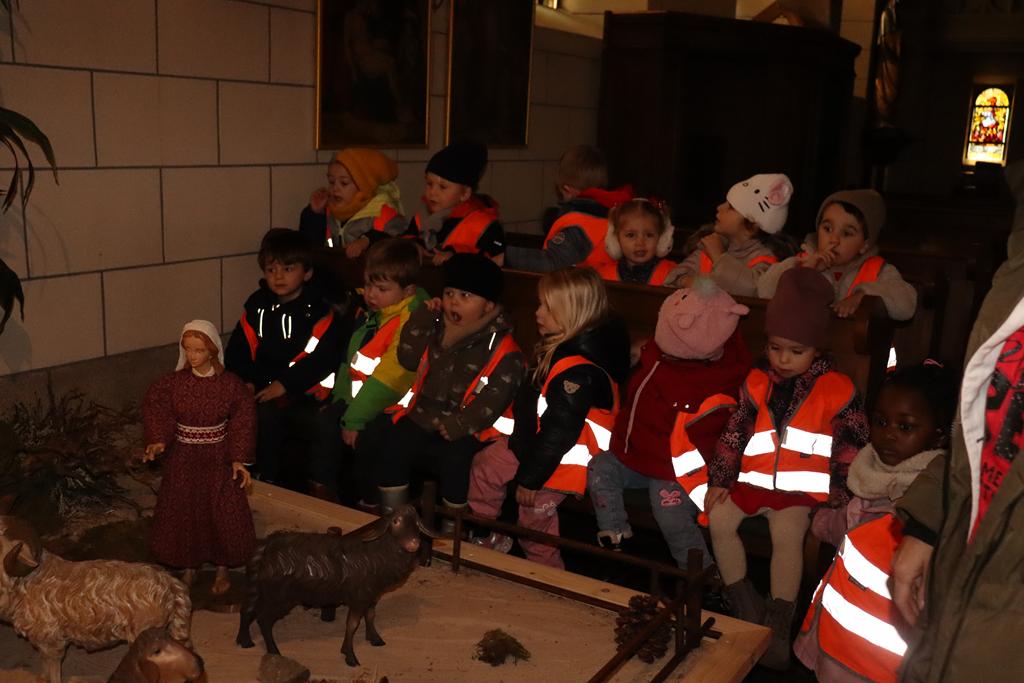 In der letzten Schulwoche vor den Weihnachtsferien spazierten wir mit unseren Kindern zur Eynattener Dorfkirche. Dort bestaunten die Kinder die schön hergerichtete Krippe. Gemeinsam sangen wir einige Weihnachtslieder. Wir freuen uns jetzt schon auf den Besuch der Krippe im Januar, um die Weihnachtsgeschichte weiterhin verfolgen zu können.