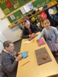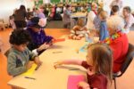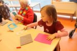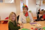 Gemeinsam mit den Großen des Kindergartens wurden kunterbunte Karnevalsmasken gebastelt.