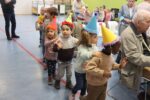 Am Donnerstagvormittag bekamen wir Besuch von den karnevalistisch kostümierten Bewohnerinnen und Bewohnern des Marienheims.