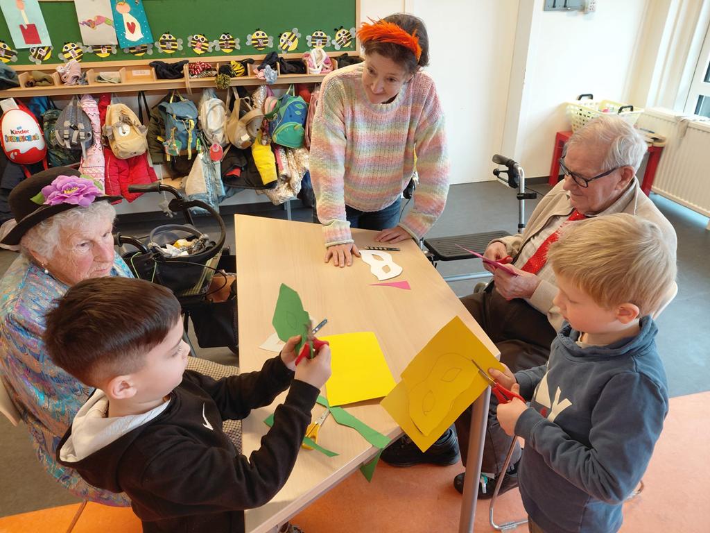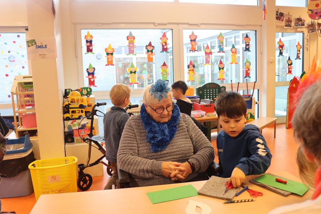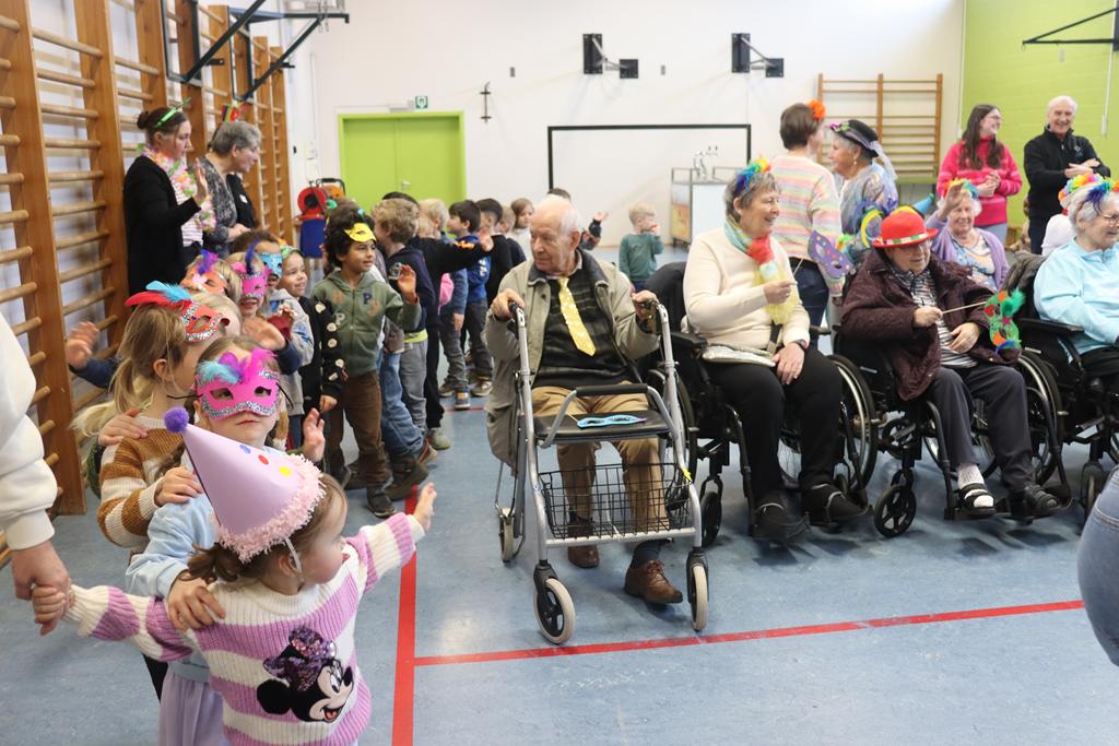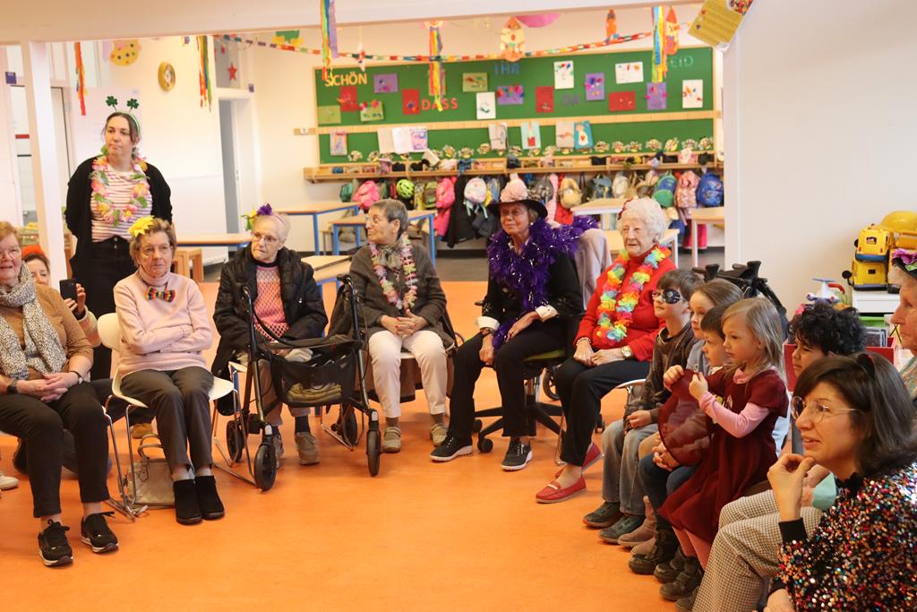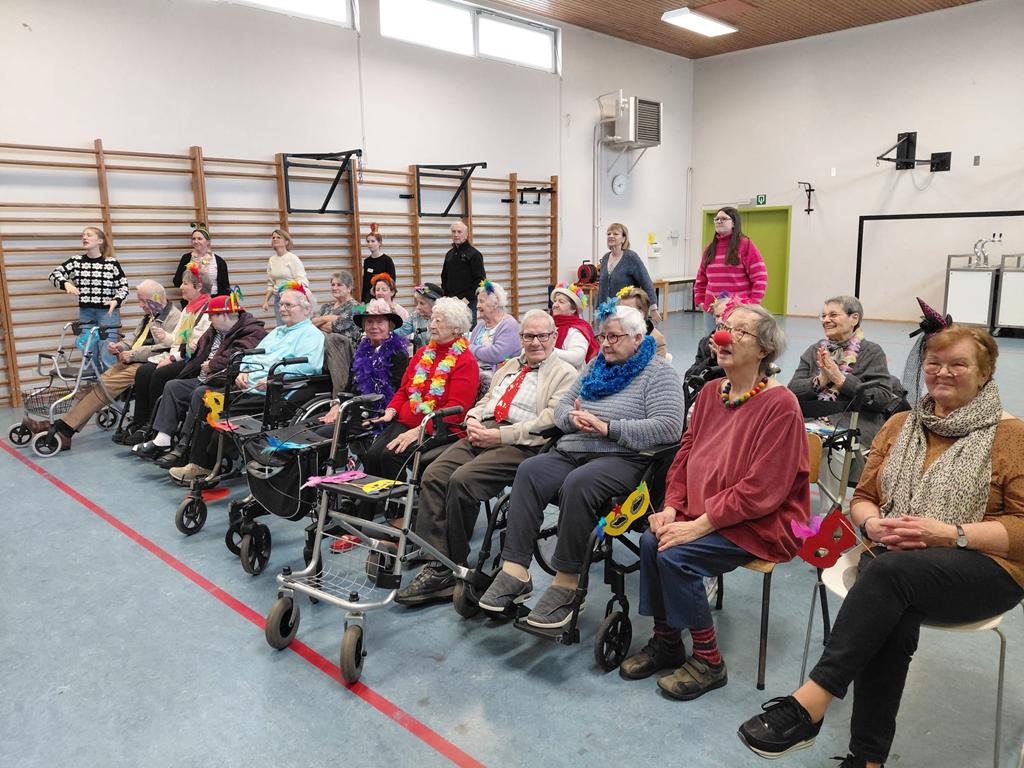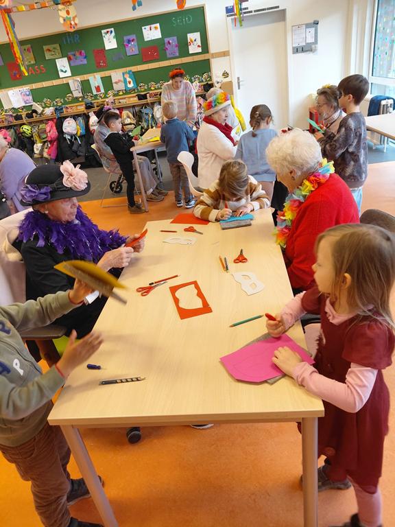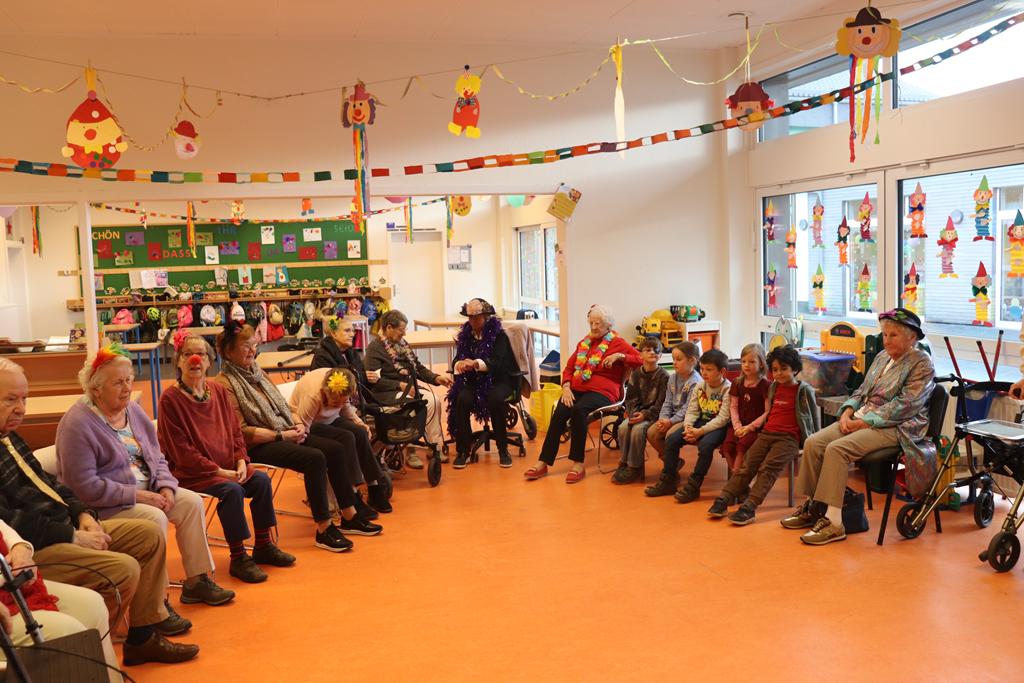 Am Donnerstagvormittag bekamen wir Besuch von den karnevalistisch kostümierten Bewohnerinnen und Bewohnern des Marienheims.