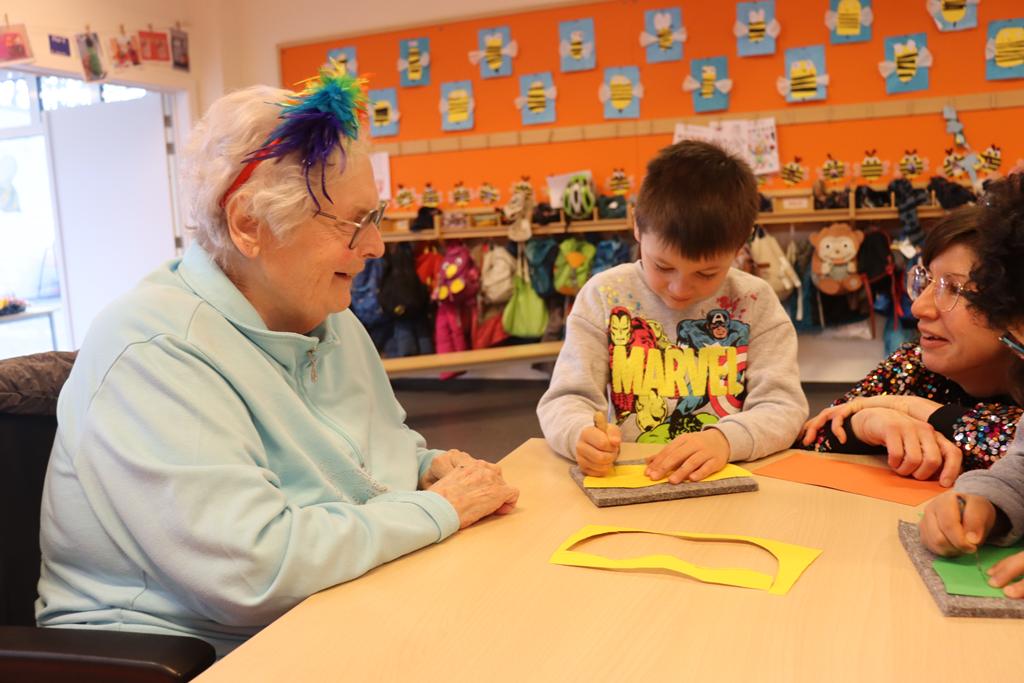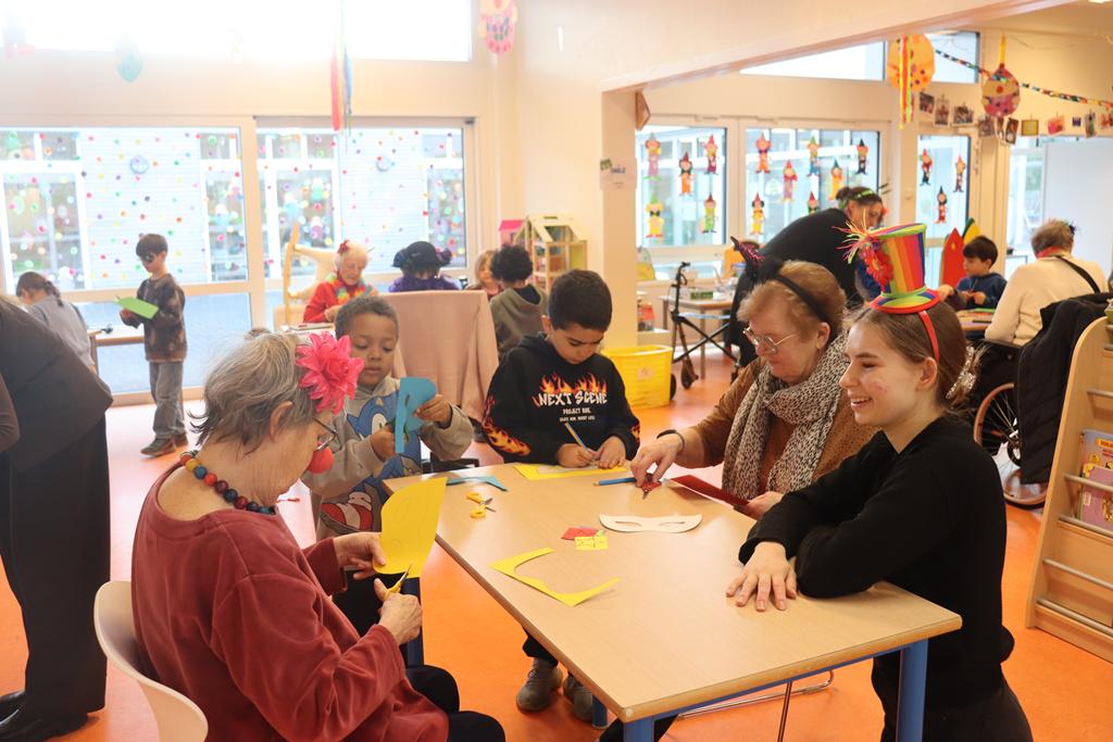 Gemeinsam mit den Großen des Kindergartens wurden kunterbunte Karnevalsmasken gebastelt.