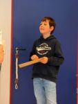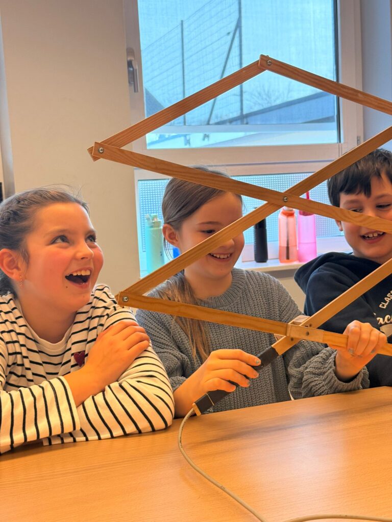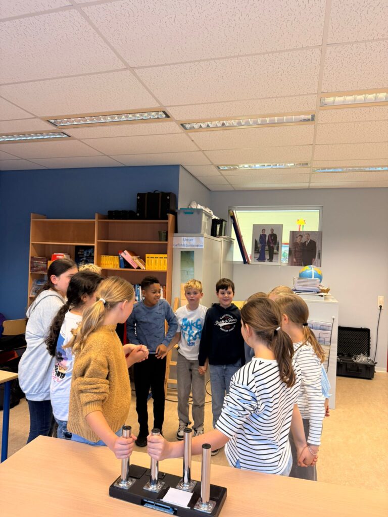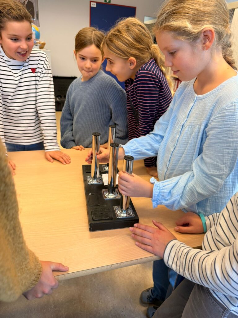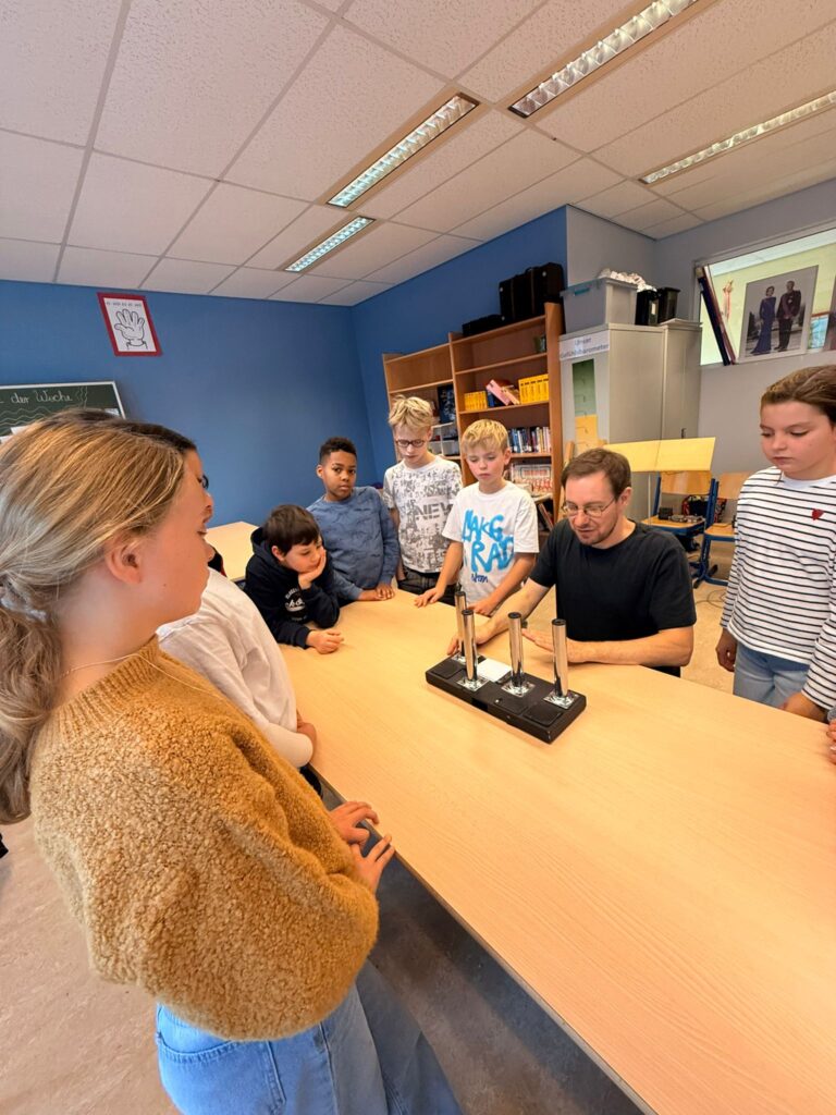 Ein weiteres Highlight war das geheimnisvolle Gerät namens „Kiloohm“. Um es zum Klingen zu bringen, mussten die Kinder zwei Metallstangen berühren. Je stärker der Druck mit den Fingern, desto schneller und höher wurde die Melodie. Mit etwas Übung konnten wir sogar ein kleines Klavierstück spielen – und am Ende gemeinsam ein Stück aufführen.
