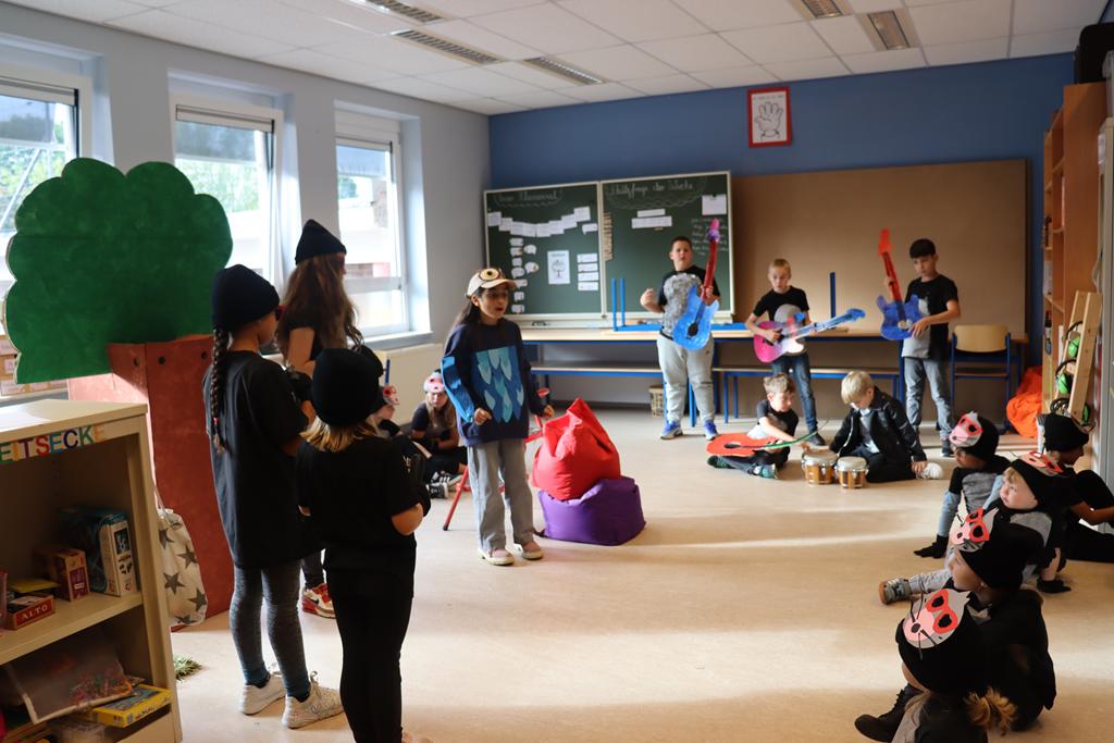 Ein intensiver Projekttag liegt hinter uns. Die Szenen wurden geprobt, die verschiedenen Lieder gemeinsam wiederholt, an den Accessoires der letzte Feinschliff vorgenommen – und noch vieles mehr, das wir an dieser Stelle noch nicht verraten möchten…