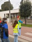 Danach ging es sofort in die Praxis. Leuchtwesten angezogen, Kellen und Trillerpfeifen in die Hand – und schon wurde am Zebrastreifen geübt. Hier setzten die Schülerinnen und Schüler ihr Wissen direkt um und zeigten, wie umsichtig und sicher sie handeln können.