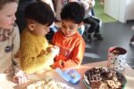 Die Kinder der zweiten Gruppe der Mittleren und Großen verwandelten die Spielhalle in eine riesengroße Backstube und zeigten, dass das Plätzchen- backen vor Weihnachten nicht fehlen darf.