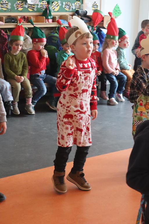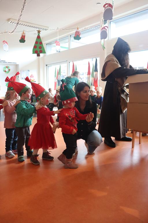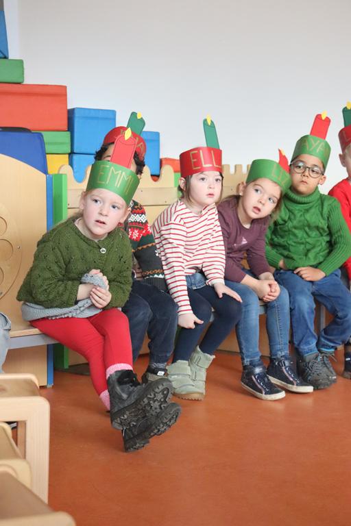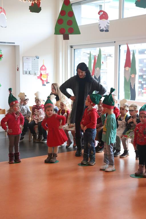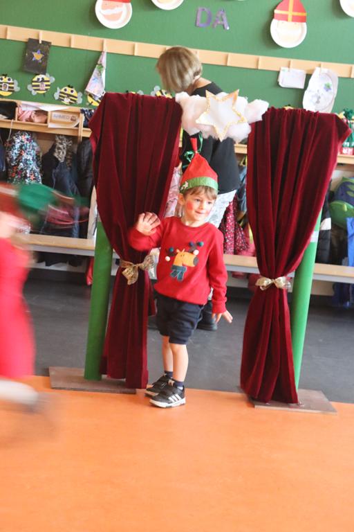 Unsere Kleinsten verwandelten sich in Weihnachtswichtel. Nachdem sie durch das Wichteltor den Nikolaus begrüßt hatten, ihren Platz eingenommen hatten, führten sie ihren Tanz auf.