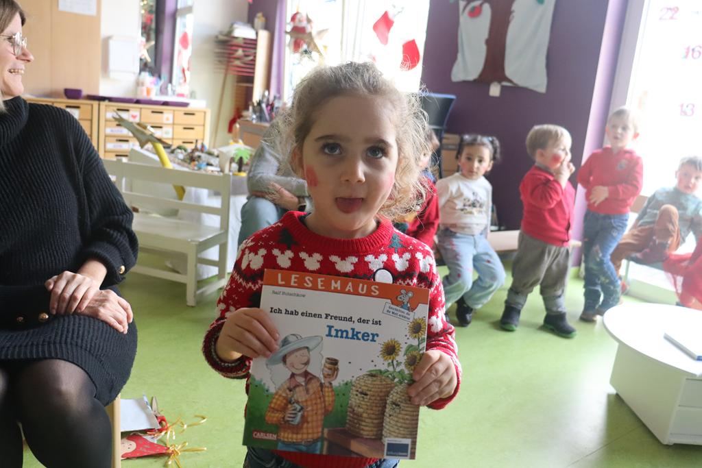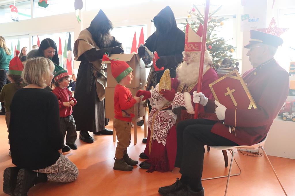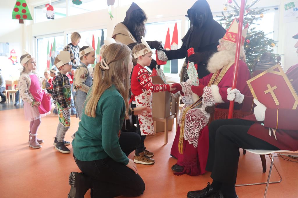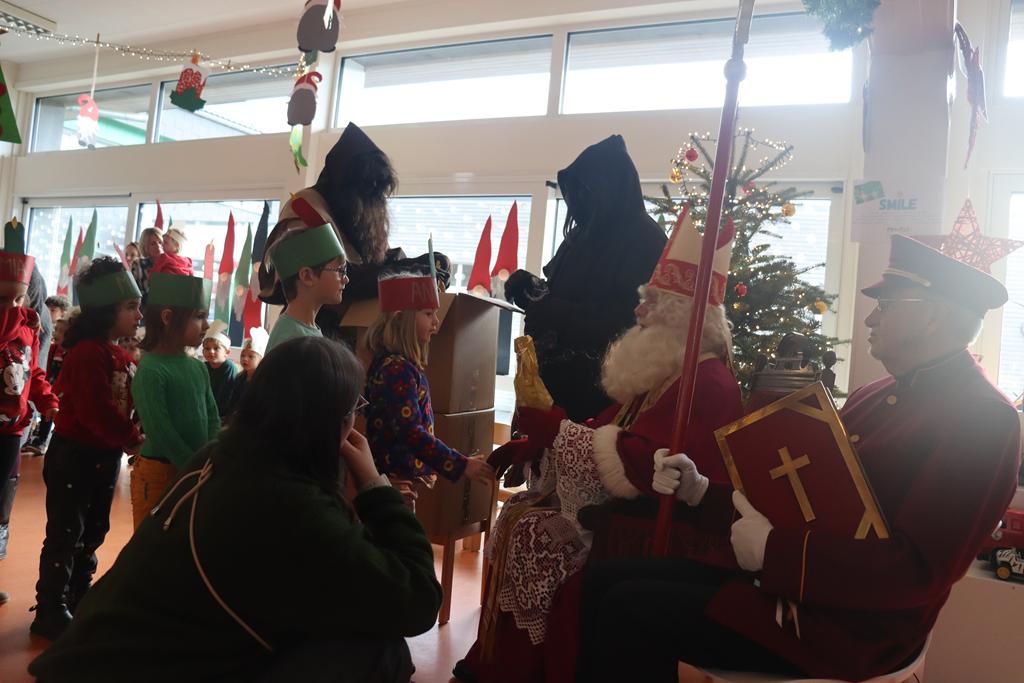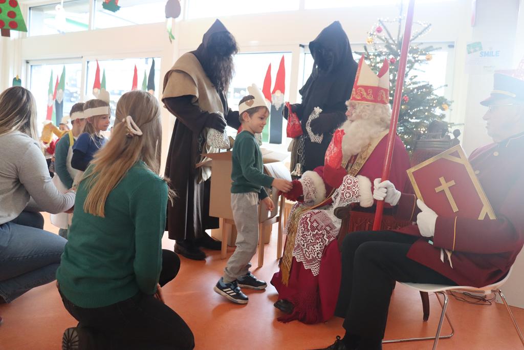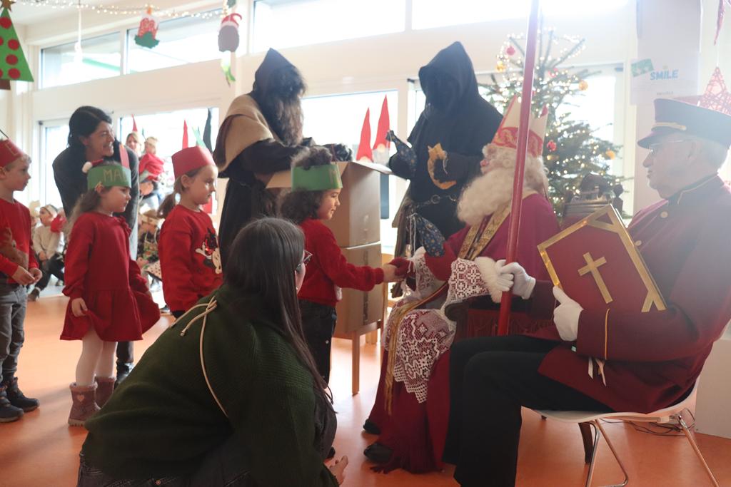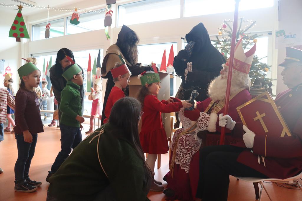 Sankt Nikolaus nahm sich die Zeit, sein goldenes Buch aufzuschlagen und las den Kinder vor, was seine Engelchen im Laufe des Jahres vom Himmel beobachten konnten. Eine kleine Überraschung für jedes Kind brachten die Hans Muffs dem Nikolaus näher und ehrfürchtig holten die Kinder sich diese beim Heiligen Mann ab.