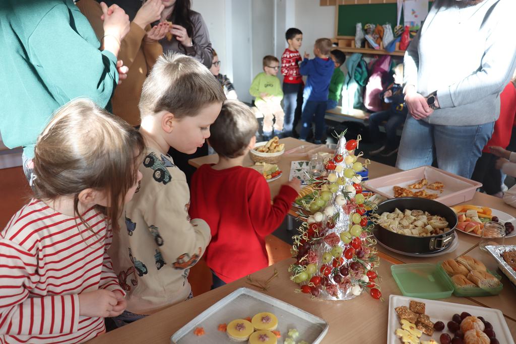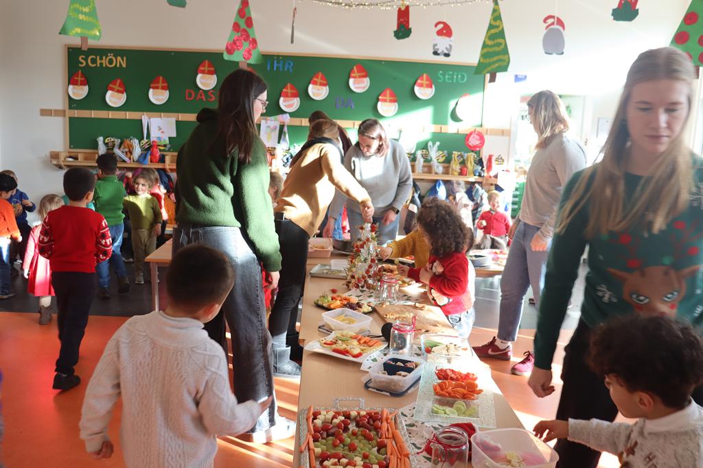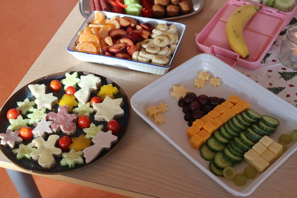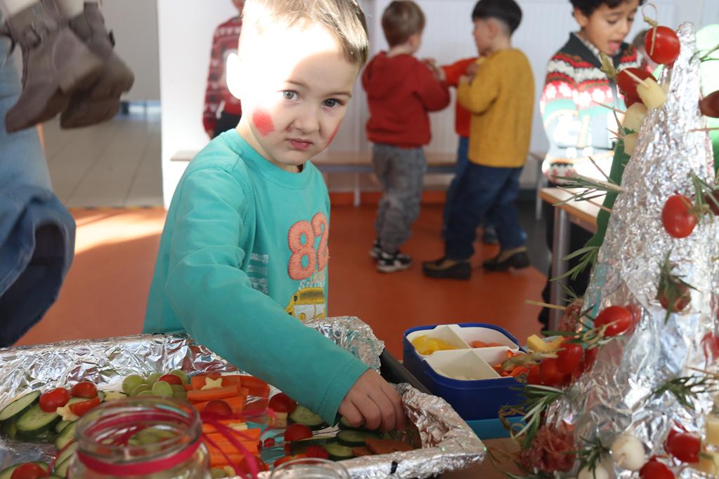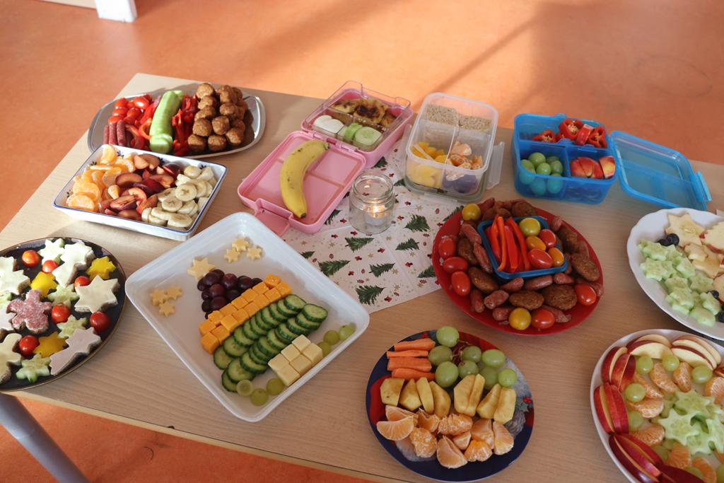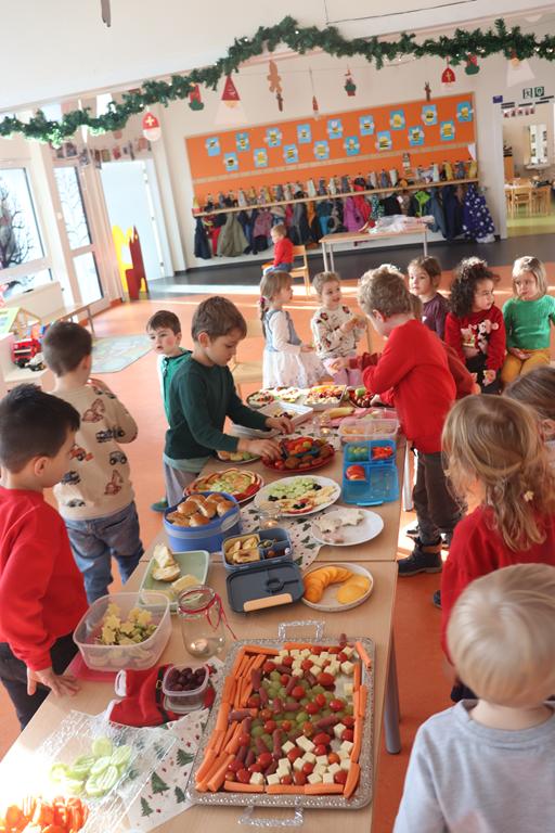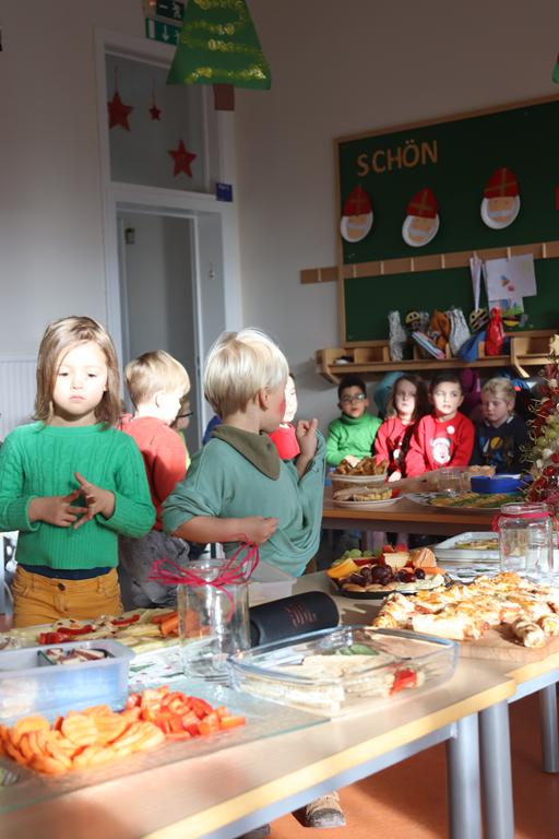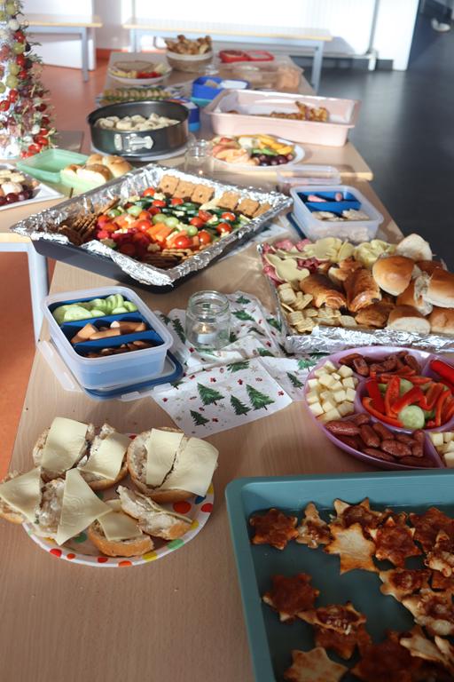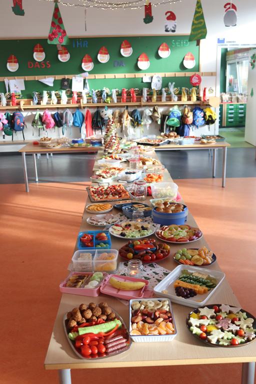 Ein herrlich weihnachtliches Buffet erwartete die Kinder am Mittag, das liebevoll von den Eltern zusammengestellt worden war.