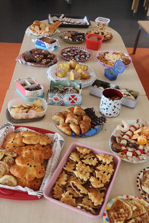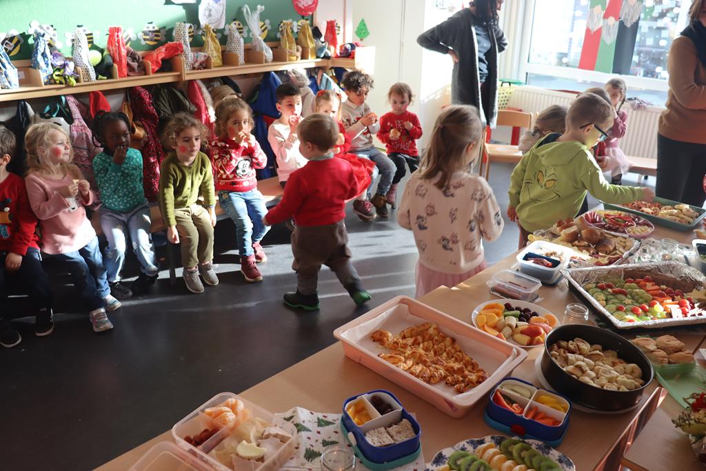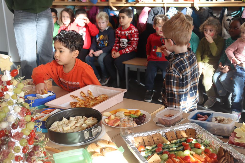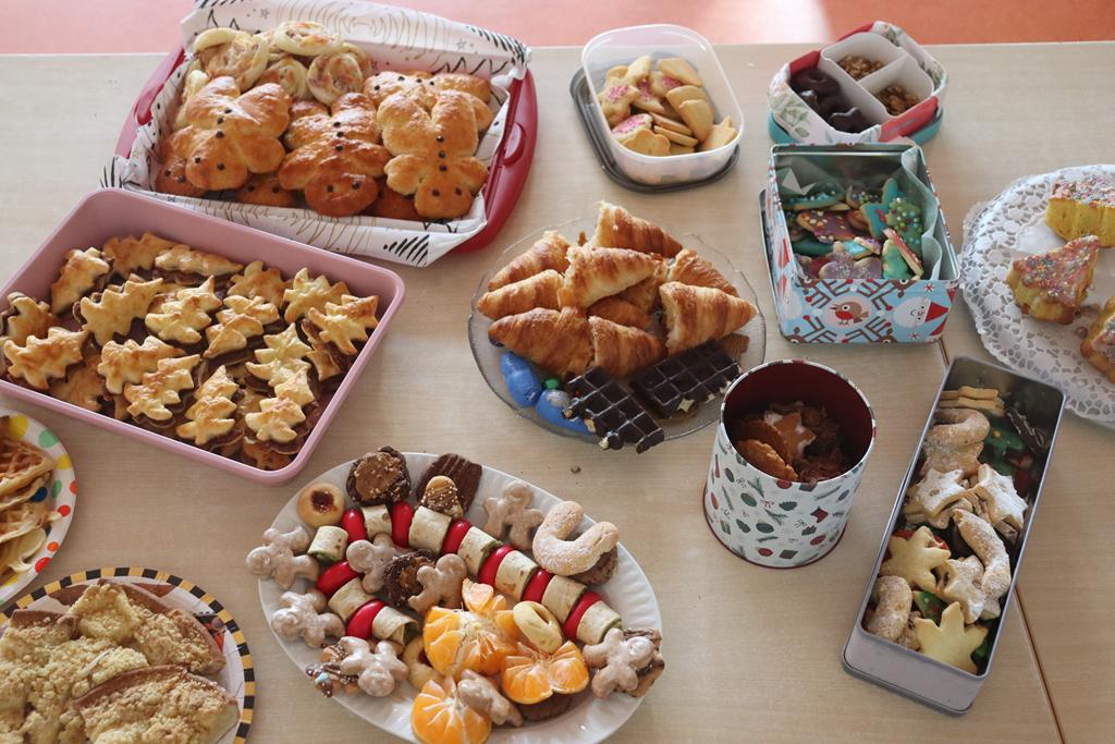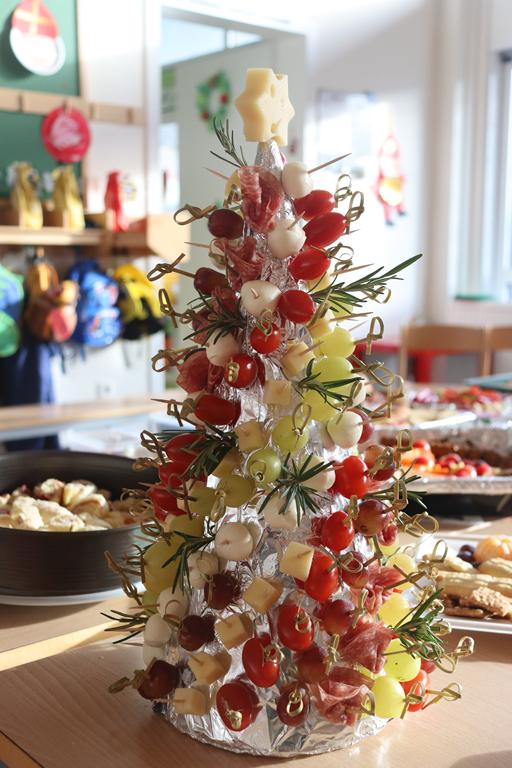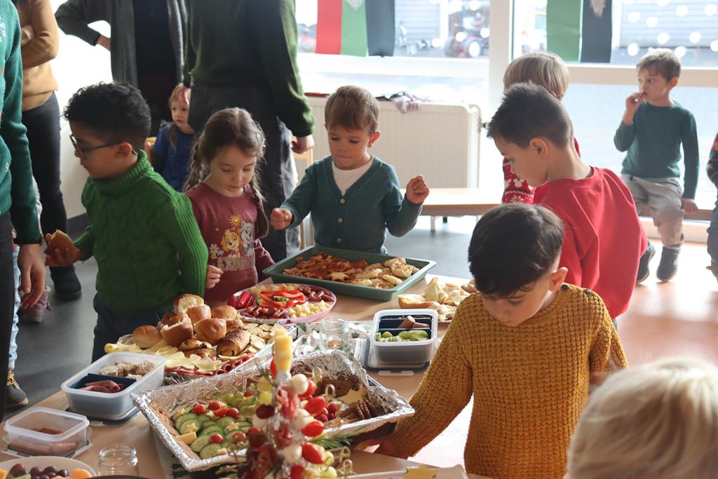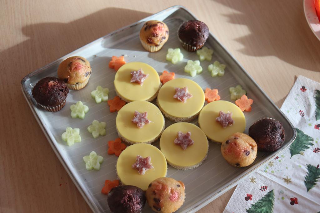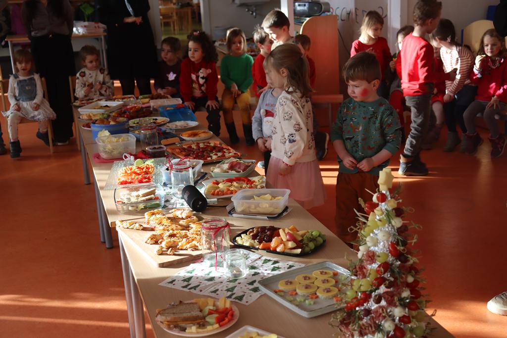 Ein herrlich weihnachtliches Buffet erwartete die Kinder am Mittag, das liebevoll von den Eltern zusammengestellt worden war.