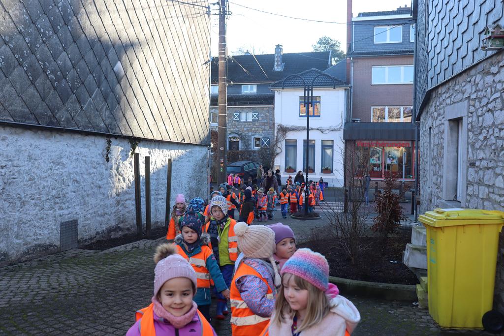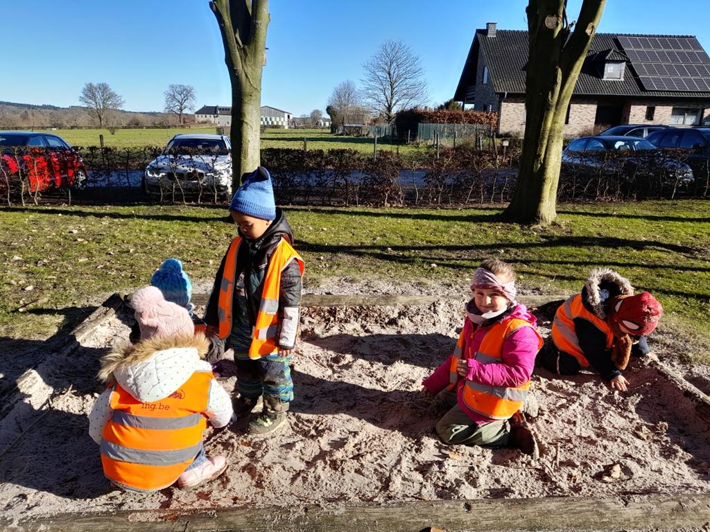 Am vergangenen Mittwoch konnten wir unseren Waldvormittag nicht wie gewohnt durchführen. Der Streik der Busse hinderte uns daran nach Köpfchen zu fahren. Das Wetter war auf unserer Seite und somit entschieden wir uns, einen Spaziergang durch Eynatten zu machen. Drei interessante „Stationen“ sorgten für reichlich Abwechslung.