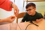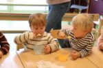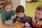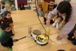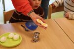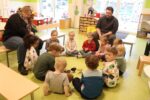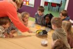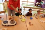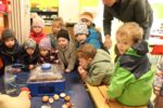 Zuerst einmal wurde unseren Kindern gezeigt, was man alles mit einem Hühnerei zubereiten kann. Doch dafür war der Brutkasten nicht gedacht. Wir wollten den Kindern zeigen wie „Leben“ entsteht. 21 Tage war für unsere Kleinen eine lange Zeit, doch die Aufregung hat sich gelohnt: gelbe, schwarze, braune, graue und gestreifte Küken pickten sich tapfer durch die Eierschale. Vorsichtig streichelten die Kinder die kleinen, flauschigen, zarten Wesen. Besuch bekamen wir auch von Lichtenbusch, denn die Nachricht, dass wir Nachwuchs bekommen hatten, sprach sich schnell herum.