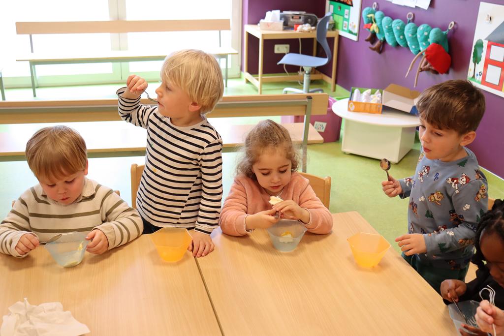 Zuerst einmal wurde unseren Kindern gezeigt, was man alles mit einem Hühnerei zubereiten kann. Doch dafür war der Brutkasten nicht gedacht. Wir wollten den Kindern zeigen wie „Leben“ entsteht. 21 Tage war für unsere Kleinen eine lange Zeit, doch die Aufregung hat sich gelohnt: gelbe, schwarze, braune, graue und gestreifte Küken pickten sich tapfer durch die Eierschale. Vorsichtig streichelten die Kinder die kleinen, flauschigen, zarten Wesen. Besuch bekamen wir auch von Lichtenbusch, denn die Nachricht, dass wir Nachwuchs bekommen hatten, sprach sich schnell herum.