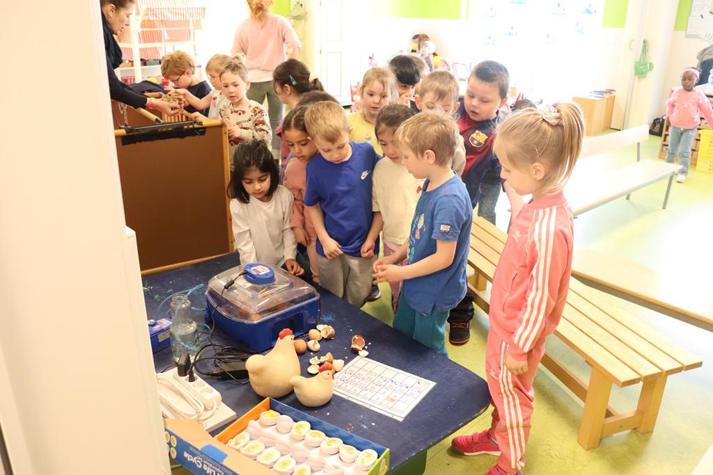 Die vergangenen Wochen waren für unsere Kindergartenkinder sehr aufregend. In diesem Jahr, pünktlich zur Osterzeit, kam wieder unser beliebter Brutkasten zum Einsatz.