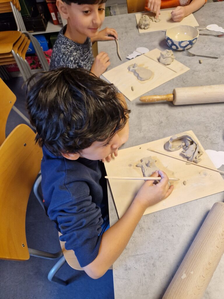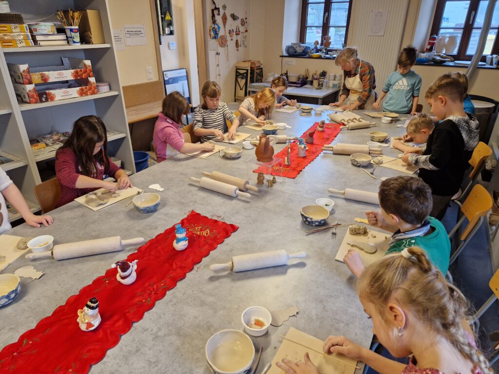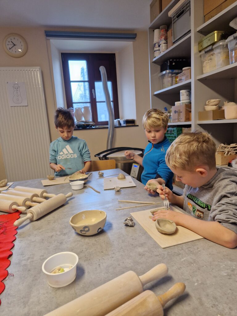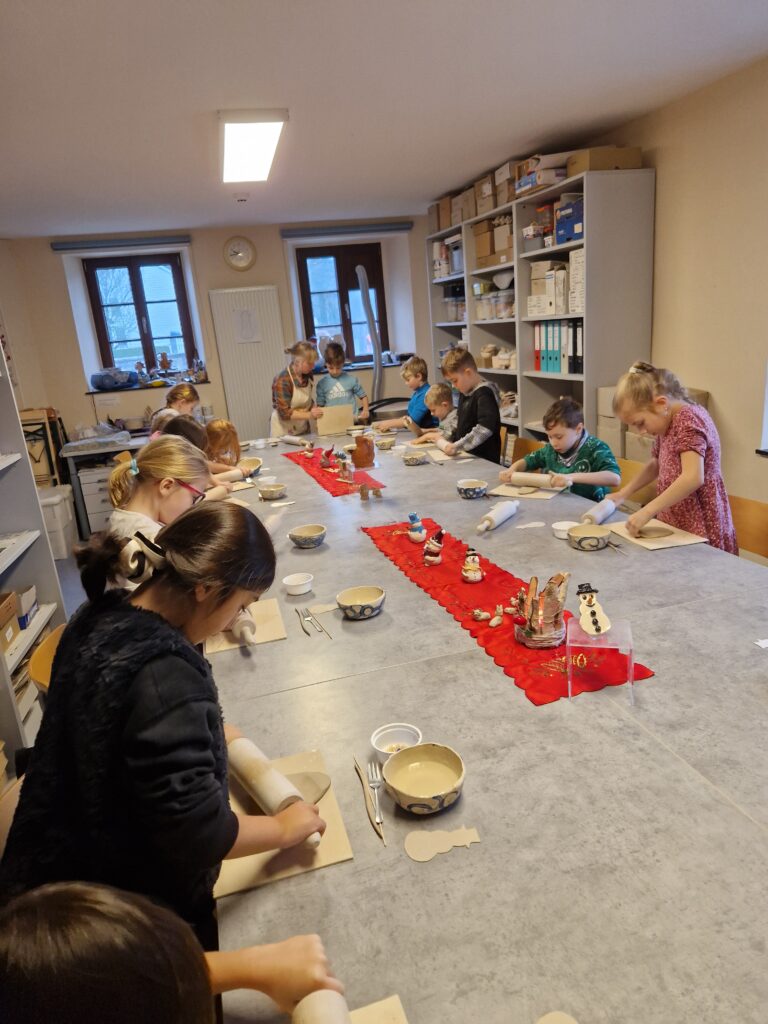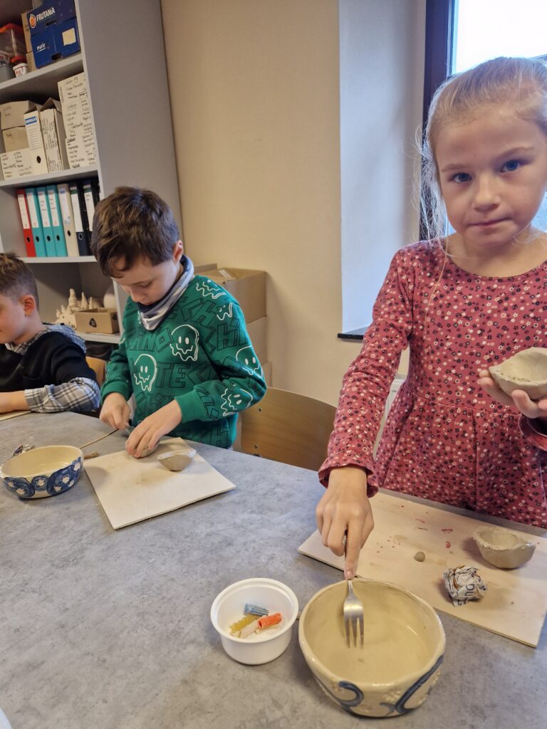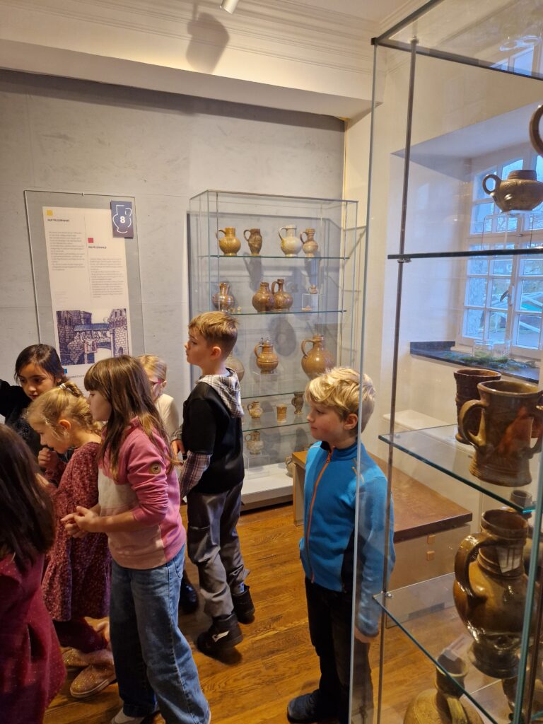 Wir, das 2. Schuljahr, haben einen wunderschönen und spannenden Vormittag im Töpfereimuseum in Raeren erlebt. Zunächst durften wir das Museum erkunden und einen ersten Einblick in die faszinierende Welt der Töpferei gewinnen. Wir staunten über alte Werkzeuge, kunstvolle Gefäße und darüber, wie viel Geschick früher schon nötig war, um schöne Keramik herzustellen.