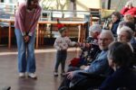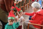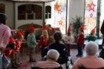 Zahlreiche Bewohner und Bewohnerinnen des Marienheims erwarteten uns im „Sonnengarten“. Schnell schlüpften unsere Kinder in ihre Kostüme und verwandelten sich in kleine Schauspieler. Die Weihnachtsgeschichte wurde aufgeführt und im Anschluss führten sie noch einen Weihnachtswichteltanz auf.